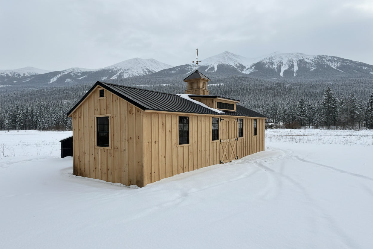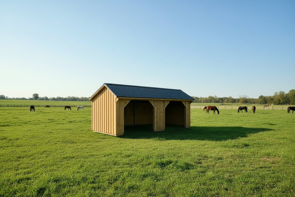 Our Amish-built run-in horse stables are versatile outdoor structures designed for horses and livestock while maintaining the same high standards of craftsmanship and durability as our sheds.